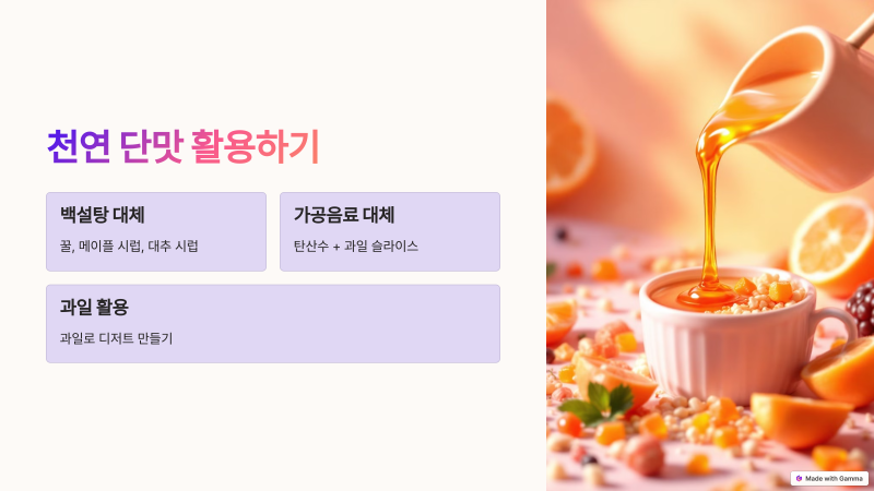 4️⃣ 설탕 섭취 줄이고 천연 단맛 활용하기 🍯