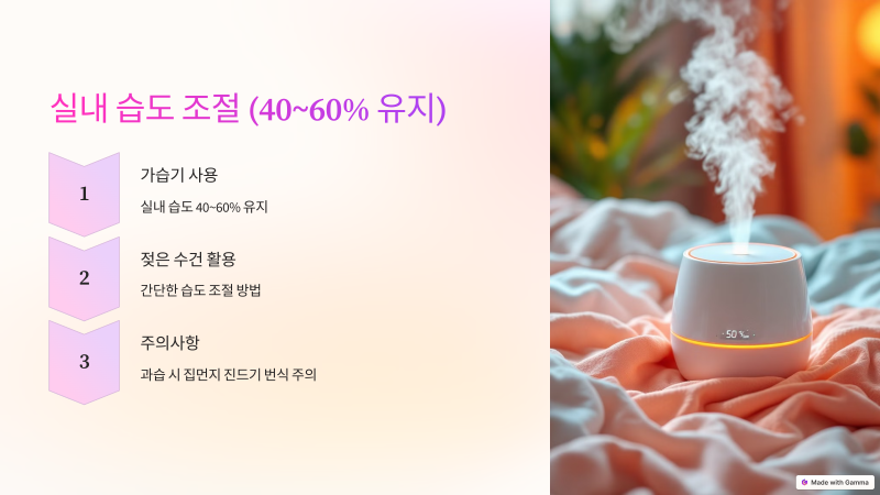 ✅ 5. 실내 습도 조절 (40~60% 유지)