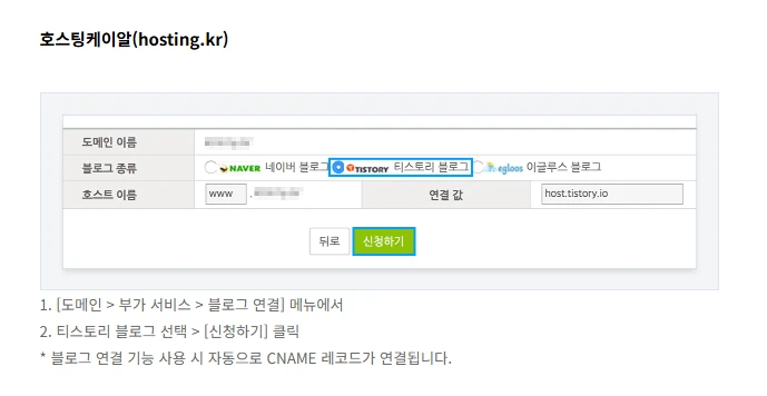 첫 번째 시도에서 https 연결 및 사이트 접속이 잘 됐기 때문에 DNS 설정과는 무관한 것으로 생각된다. 심지어 FAQ 안내 페이지 화면이 아주 오래전 기준으로 정리되어 있는 것으로 보인다. 나는 호스팅케이알로 도메인을 발급받았는데, 요즘에는 이런 화면이 아니다. 최소 몇 년 전에 기록해 둔 매뉴얼로 보인다. 티스토리 측에서 업데이트에 신경을 쓰지 않는 듯하다.